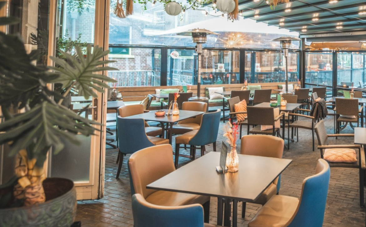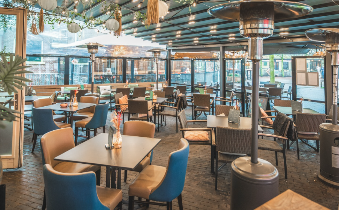- Zonnig en royaal terras met circa 90 zitplaatsen