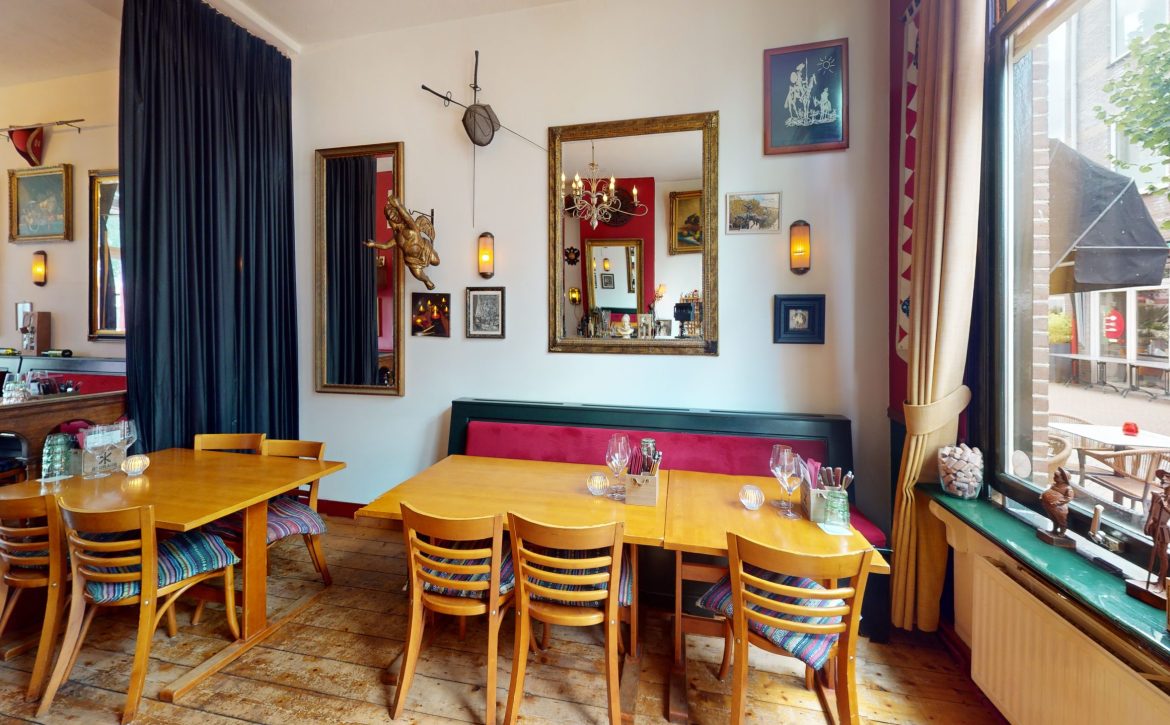 Bij binnenkomst is de authentieke sfeer zichtbaar en voelt het als een warme huiskamer. De verkoopruimte beschikt over verschillende ruimtes en hierdoor te allen tijde sfeervol ingedeeld. Het restaurant biedt binnen plaats aan maximaal 50 couverts. Daarnaast is er zowel voor als achter een terras aanwezig met zitplaats voor ruim 45 gasten.