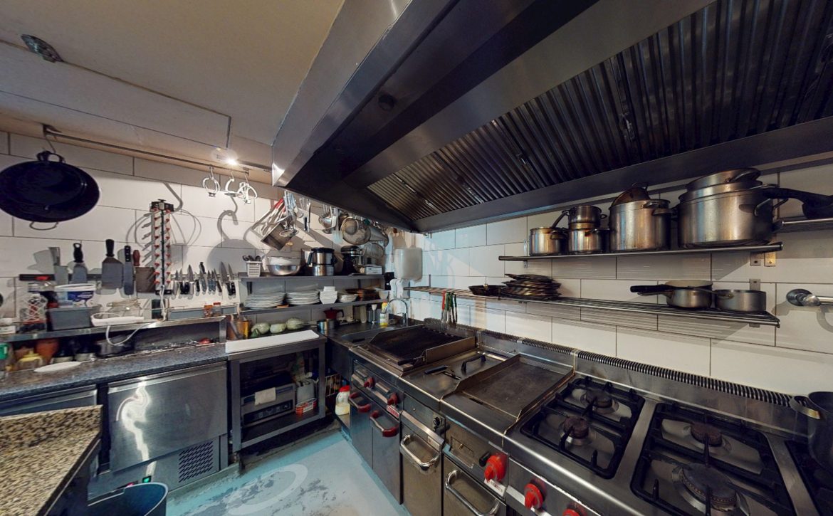 Vanuit de entree bereik je via een tussendeur het gezellig ingerichte restaurant met een centraal gesitueerde bar. Gezien het restaurant uit twee panden bestaat, heb je op deze manier goed overzicht. Daarnaast is een compacte open keuken aanwezig met extra spoelkeuken. De keuken beschikt over professionele apparatuur en is onlangs nog voorzien van nieuwe koelwerkbanken. Achterin de keuken is een kleine ruimte aanwezig naar een aparte spoelkeuken.