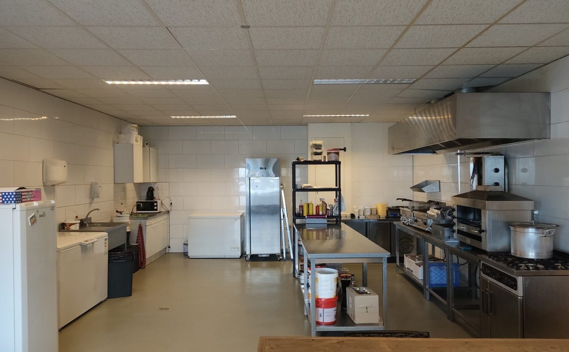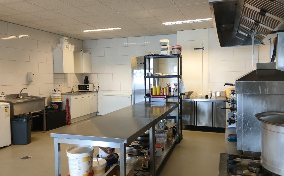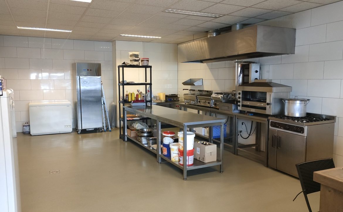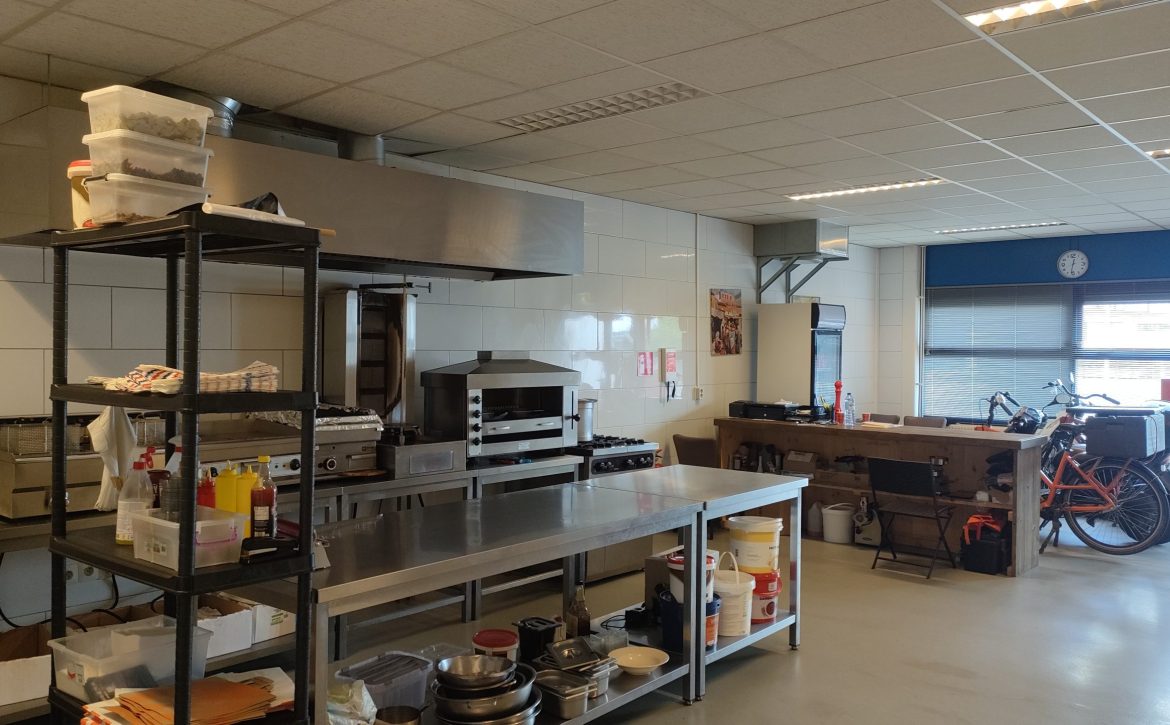 Gezien de locatie zijn hier volop mogelijkheden voor een snelle service en kan het assortiment eenvoudig worden uitgebreid. De ruimte is geschikt om aanverwante producten te verkopen zoals het bereiden van pizza’s. Deze ruimte en locatie leent zich ook om te gebruiken als productiekeuken voor cateringactiviteiten.