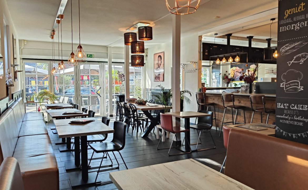 Via het terras aan de voorzijde van het object kom je via de entree direct de cafetaria binnen. De gehele pui is voorzien van een groot raam, waardoor er veel daglicht binnenkomt en de zaak een frisse uitstraling heeft.