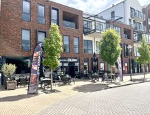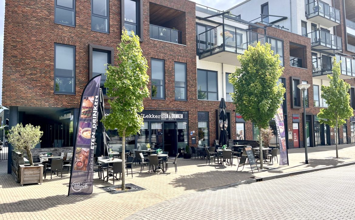 Via het terras aan de voorzijde van de zaak kom je via de entree direct de eetwinkel binnen. De gehele pui is voorzien van een groot raam, waardoor er veel daglicht binnenkomt en de zaak een frisse uitstraling heeft.
