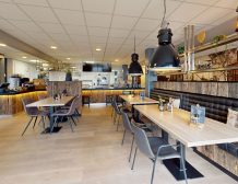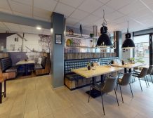 De inrichting is fris en modern te noemen en nodigt uit om er ter plaatse te eten. Bij mooi weer is het mogelijk om buiten op het terras aan het gezellige stationsplein te eten, waardoor er tevens een laagdrempelige inloop ontstaat.