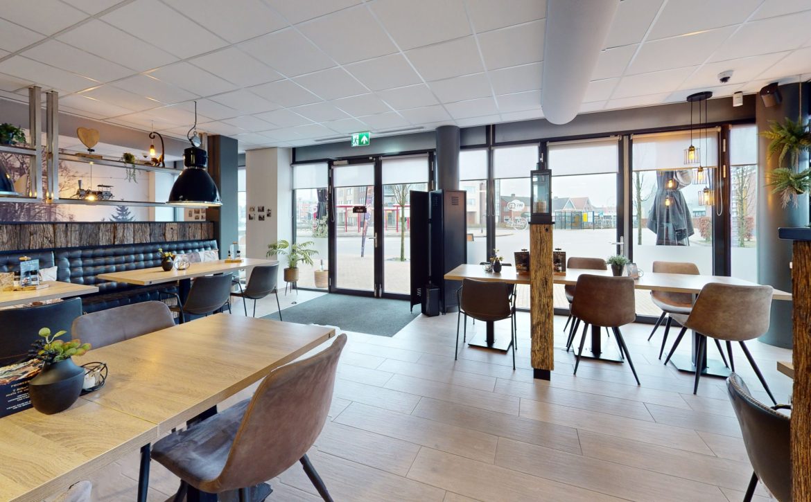 Er is zitgelegenheid voor zo´n 50 personen. Daarnaast is er een terras aanwezig, geschikt voor ruim 40 zitplaatsen. De totale oppervlakte verkoop bedraagt zo´n 160 m².